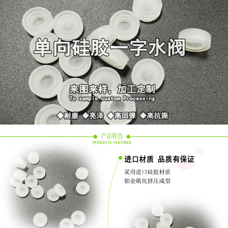 單向硅膠一字閥:采用特種硅膠原材料,連續(xù)擠出成型,內(nèi)壁平滑;常規(guī)硬度60度(邵氏硬度10-85度);耐溫范圍廣(-50~+280℃),可以適應高低溫設備需求,并耐老化。常規(guī)PE袋+紙箱包裝,特殊要求可按客戶標準;產(chǎn)品符合SGS、FDA、LFGB、生物相溶性等;用于醫(yī)藥灌裝設備、醫(yī)療設備、生物制藥、醫(yī)療引流。