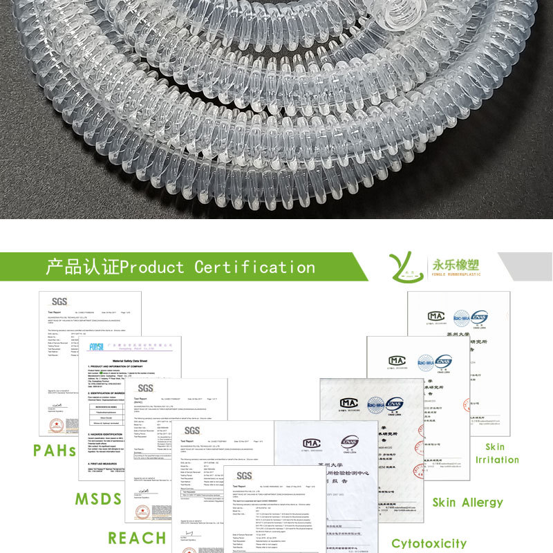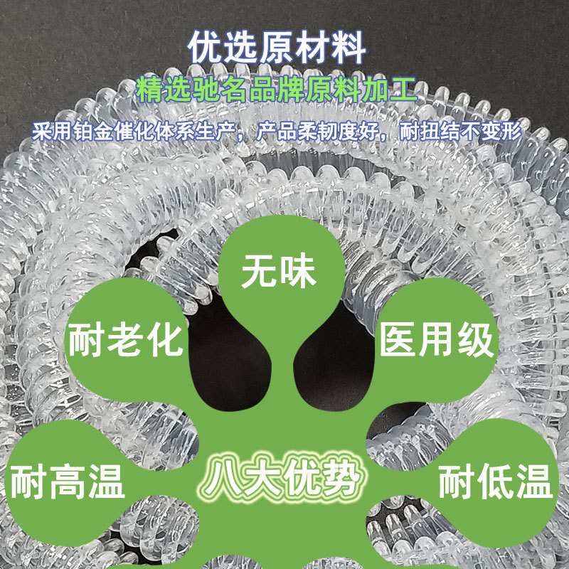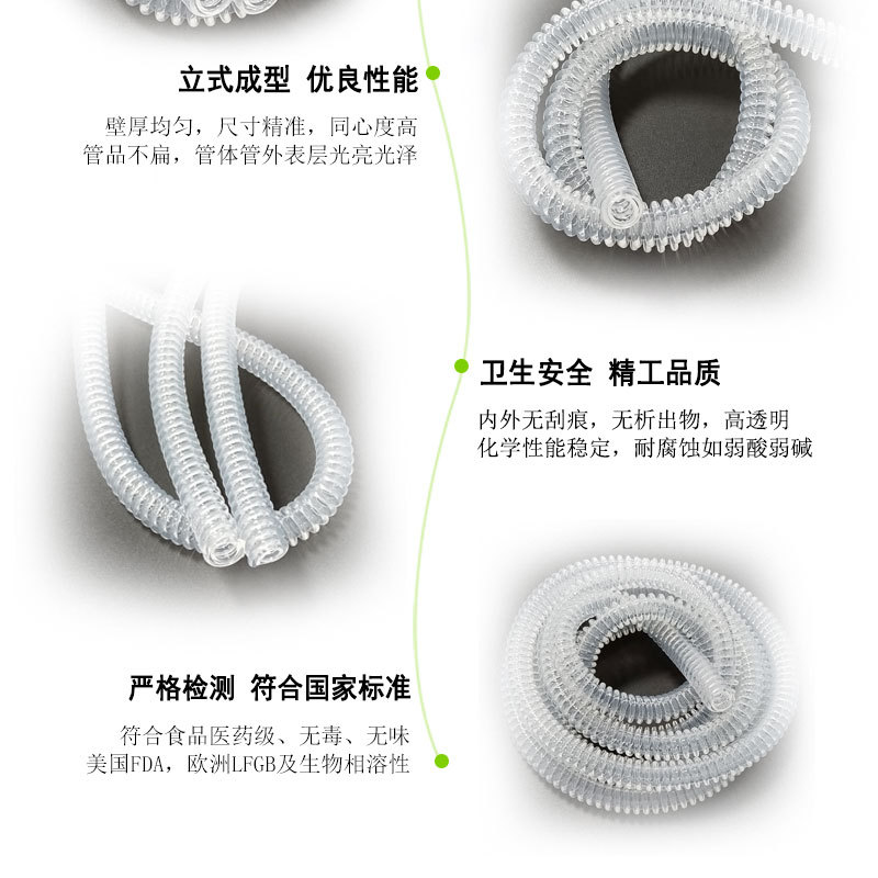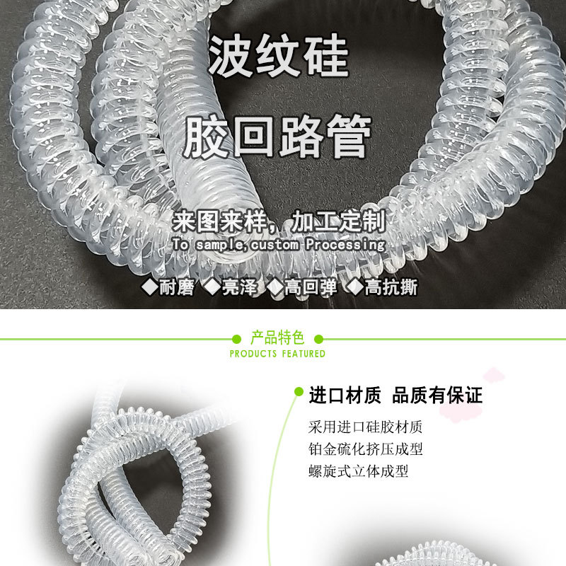 波紋硅膠管:采用進口硅膠原材料,連續(xù)擠出一次成型,內(nèi)壁平滑;常規(guī)硬度60度(邵氏硬度20-80度);耐溫范圍廣(-50~+280℃),可以適應(yīng)高、低溫設(shè)備需求,并耐老化。常規(guī)PE袋+紙箱包裝,特殊要求可按客戶標(biāo)準(zhǔn);產(chǎn)品符合SGS、FDA、LFGB、生物相溶性等;用于醫(yī)用設(shè)備、麻醉機、機械連接、食品傳送設(shè)備等。