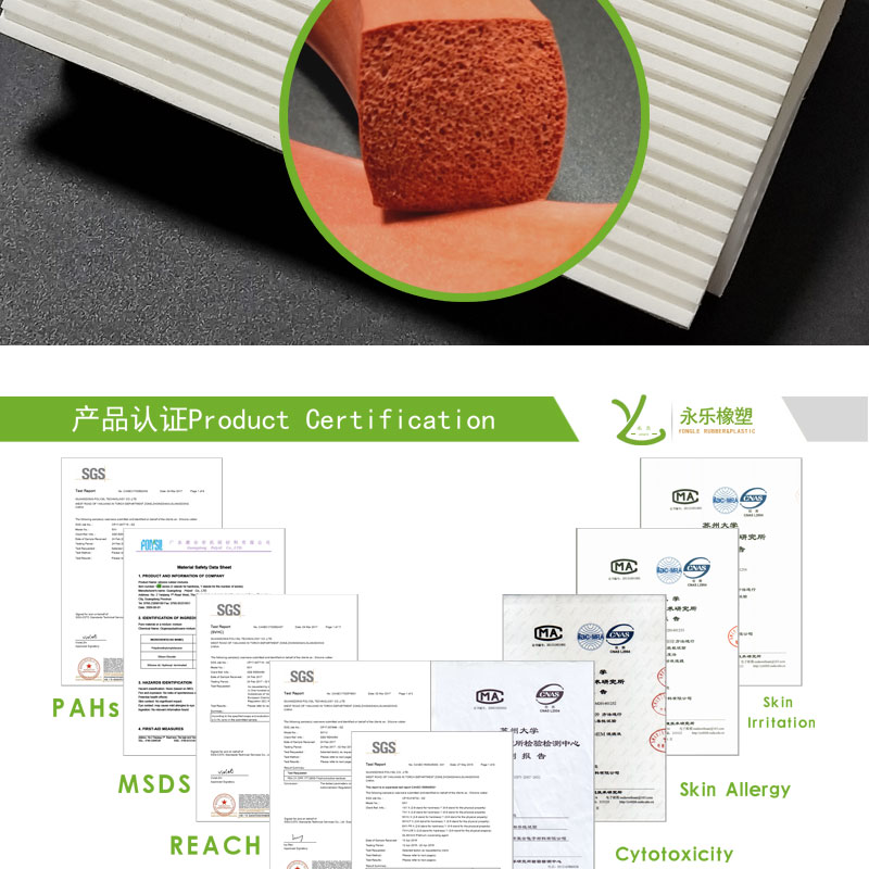 產(chǎn)品認(rèn)證:發(fā)泡條類可達(dá)到食品FDA,發(fā)泡板ROHS等