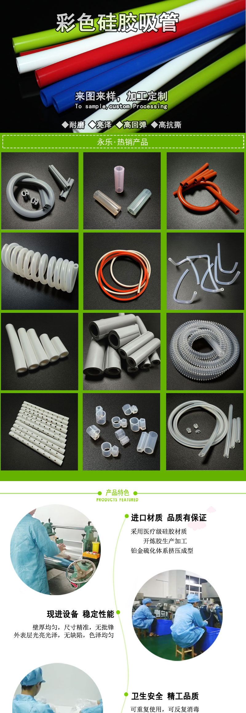 擠出硅橡膠制品????????產品名稱: 食品級彩色硅膠吸管