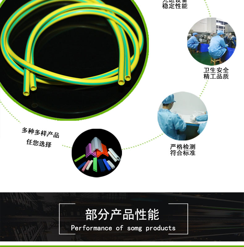 采用進口硅膠原材料,表面光潔美觀,一體雙色成型,內(nèi)外光滑,耐天候老化,耐臭氧,耐化學作用;常規(guī)硬度60度(邵氏硬度值30-90度);耐溫范圍廣(-50~+280℃),可以適應(yīng)高、低溫設(shè)備需求,并耐老化。常規(guī)PE袋+紙箱包裝;產(chǎn)品符合SGS、FDA、LFGB、ULV0等;用于機械家電,燈具,小家電,電線電纜等。