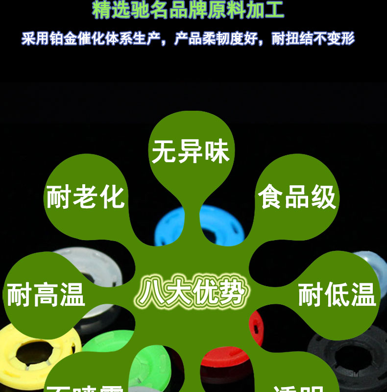 采用進口硅膠材料,模壓成型,內(nèi)壁平滑,壁厚均勻;常規(guī)60度(邵氏硬度值20-80度);耐溫范圍廣(-50~+280℃),可以適應高、低溫設備需求,并耐老化。常規(guī)PE袋+紙箱包裝,特殊要求可按客戶標準;產(chǎn)品符合SGS、FDA、LFGB、生物相溶性等;用于灌裝機、蠕動泵專用、醫(yī)療醫(yī)用器械、輸液泵等。