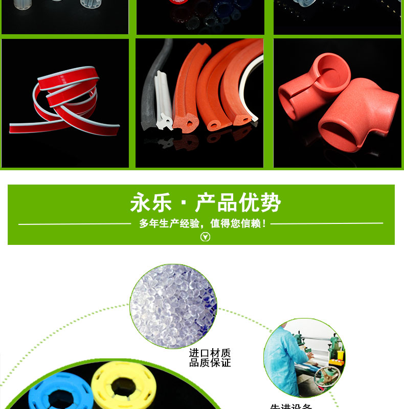 本公司通過ISO9001體系,生產(chǎn)鉑金硅膠管,蠕動泵硅膠管,食品醫(yī)療模壓硅膠成型件及硅橡塑制品密封組件定制生產(chǎn)等。以“研制更好的產(chǎn)品,提供更好的服務,創(chuàng)建更好的形象”三個更好作為競爭策略,不斷進行變革和管理創(chuàng)新,增強企業(yè)綜合競爭力。