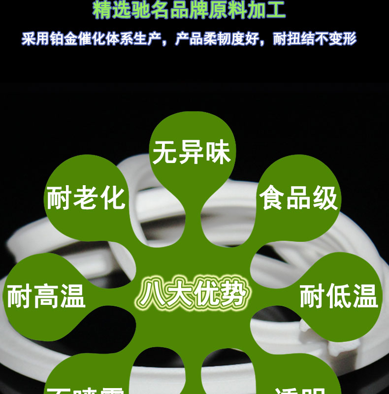 泛光燈路燈發(fā)泡防水圈采用進(jìn)口硅膠材料,模壓成型,內(nèi)壁平滑,壁厚均勻;常規(guī)60度(邵氏硬度值20-80度);耐溫范圍廣(-50~+280℃),可以適應(yīng)高、低溫設(shè)備需求,并耐老化。常規(guī)PE袋+紙箱包裝,特殊要求可按客戶標(biāo)準(zhǔn);產(chǎn)品符合SGS、FDA、LFGB、生物相溶性等;用于灌裝機(jī)、蠕動(dòng)泵專(zhuān)用、醫(yī)療醫(yī)用器械、輸液泵等。