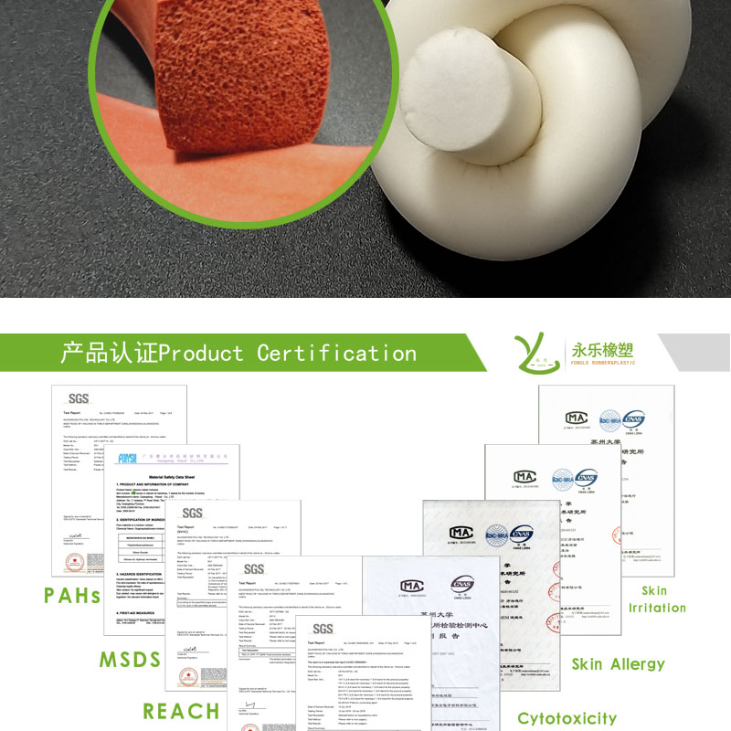 產(chǎn)品認(rèn)證:發(fā)泡條類可達(dá)到食品FDA,發(fā)泡板ROHS等