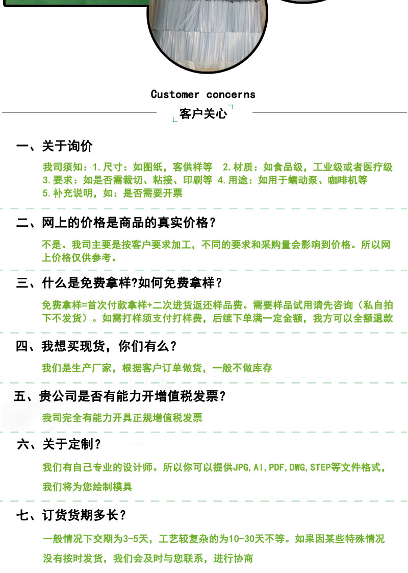 | 產(chǎn)品硬度 | 20-80A | 打樣時(shí)間 | 7天內(nèi) | 產(chǎn)品樣板 | 現(xiàn)樣免費(fèi) |