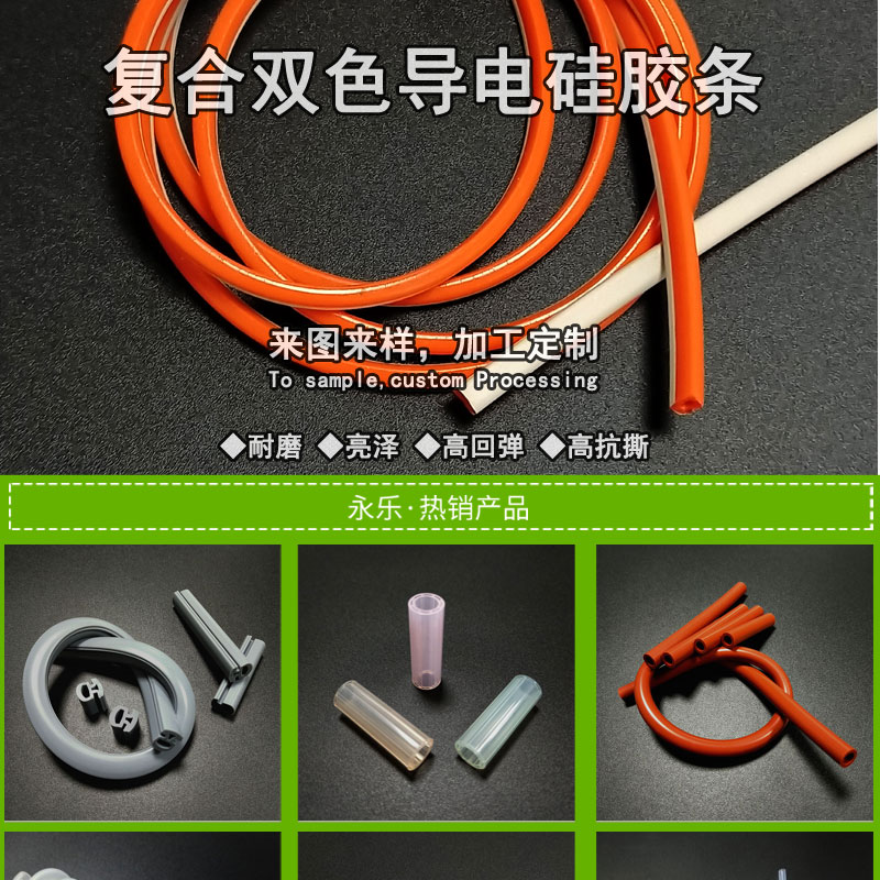 雙色硅橡膠制品產(chǎn)品名稱:復(fù)合雙色導(dǎo)電硅膠條