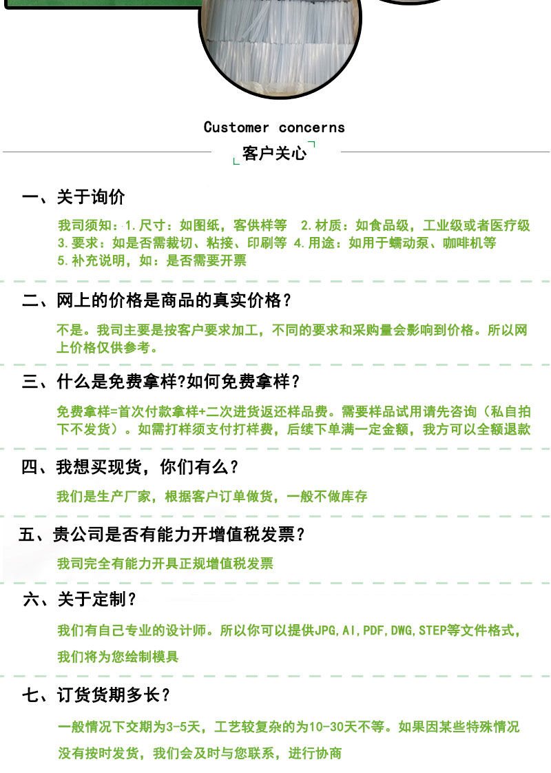 | 產(chǎn)品硬度 | 20-80A | 打樣時間 | 7天內(nèi) | 產(chǎn)品樣板 | 現(xiàn)樣免費(fèi) |