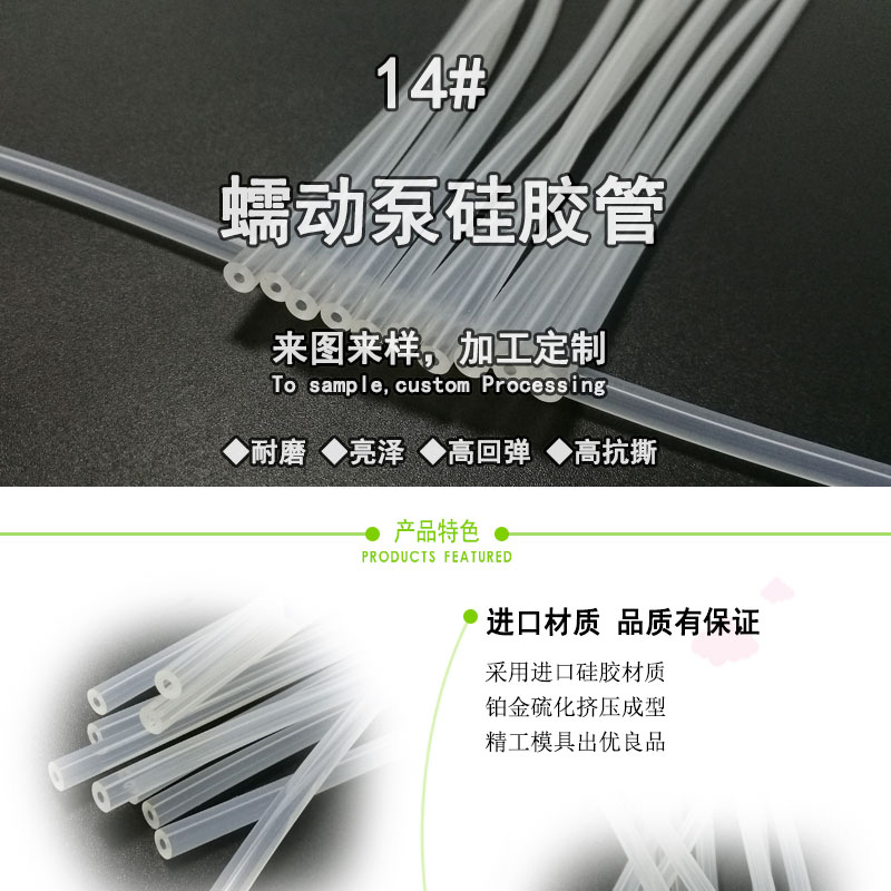 14#蠕動泵硅膠管:采用進口硅膠原材料,一體式成型,內壁平滑;硬度60度(邵氏硬度值30-90度);耐溫范圍廣(-50~+280℃),可以適應高、低溫設備需求,并耐老化,耐磨。常規(guī)PE袋+紙箱包裝,特殊要求可按標準;符合SGS、FDA、LFGB、生物相溶性等;用于灌裝機、蠕動泵專用、醫(yī)療醫(yī)用器械、輸液泵等。